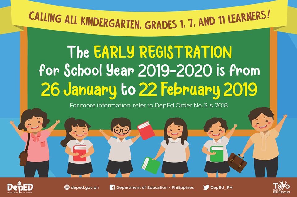 Pia Cordillera On Twitter Mark Your Calendars The Early Registration For Kindergarten Grades 1 7 And 11 Learners Will Start On Jan 26 2019 For Sy 2019 2020 Register Early In A Public