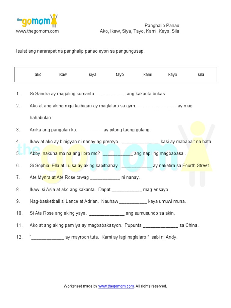 Some of the worksheets displayed are Ako ikaw siya tayo kami kayo sila Panghalip panao Pangalan Pangalan Teachers guide in aral pan 6 pdf Spectrum math grade 6 answers Unang markahan baitang 2 supplemental lesson plan Filipino baitang 1 ikalawang markahan.